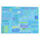 Belle composition avec différentes polices de couleur sur un arrière - plan bleu, sac cadeau en papier parfait pour un nouveau-né ou un baby shower