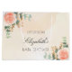 Brosse dorée couleur eau se dessine comme arrière - plan. Décoré d'or rose et de rose pastel rose vif, de fleurs roses, de feuilles d'eucalyptus verts, de sprigs, de verdure et de faux sprigs d'or. Personnalisez et ajoutez un nom. Le nom est écrit avec un script de style moderne écrit à la main.