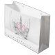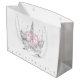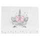 Sacoche cadeau de baby shower Unicorn avec adorable visage de licorne de diamant rose et argent avec joli arc en diamant rose sur un arrière - plan de dispersion de diamant. Ce sac cadeau de licorne est facilement customisé avec du texte.