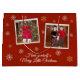 Super mignon, grand sac cadeau de Noël a un papier arrière - plan rouge texturé et 2 cadres pour quelques-unes de vos photos de famille préférées. De mignons flocons blancs sont éparpillés. Le bas dit "Ayez-vous un Joyeux Petit Noël, qui peut être changé à tout ce que vous voulez personnaliser pour votre famille. L'envers du sac dit "Avec amour de notre famille à vous" (qui peut aussi être changé) et un endroit pour vos noms. D'autres tailles sont disponibles dans la boutique.