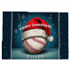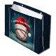 Bal de baseball Red Santa Chapeau Nom Noël Grand sac cadeau. Le design a une boule de baseball avec un chapeau de Père Noël rouge sur un arrière - plan d'hiver avec des flocons de neige blancs. Personnalisez avec votre nom. Vous pouvez modifier le texte Joyeux Noël. Idéal pour une personne qui aime le sport.