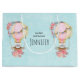 Grand sac cadeau avec un design adorable avec une illustration aquarelle. Une montgolfière ornée de jolies fleurs rouges et roses. Un mignon petit ours blanc est assis dans le panier. Arrière - plan bleu clair.