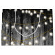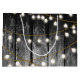 Un arrière - plan rustique en bois noir avec des lampes à cordes dorées suspendues. Un bois brûlé rustique de campagne avec une touche de glamour doré.