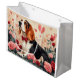 Grand Sac Cadeau Basset Hound avec Roses - Saint Valentin