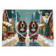 This festive design captures the joyful spirit of the holiday season, featuring an adorable dogs.Nestled in a winter wonderland, complete with a decorated Christmas tree, and beautifully wrapped presents. Snowflakes gently fall, adding a magical touch to the scene, while the vibrant colors of the holiday decorations create a warm and cheerful atmosphere.