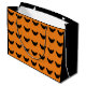 Sac cadeau de grande taille de la partie avec la chauve-souris noire image design par TheFabricSeal at Zazzle est une mignonne et simple chauve-souris noire avec les couleurs arrière - plans d'Halloween Orange et Halloween violet illustration dessin silhouette style avec peekaboo peerkaki vert et citrouille oranger yeux à la recherche d'amis et proies et une nuit d'Halloween sombre cool de l'aventure, goblins les goules et les fantômes.