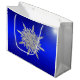 La photo d'un magnifique flocon blanc, sur un ciel bleu, avec le soleil brillant dans le coin, est présentée sur ce sac cadeau. Ce joli design est à la fois à l'avant et à l'arrière, faisant de ce sac cadeau parfait pour ces cadeaux plus grands pour la famille et les amis!