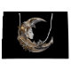 Sac cadeau avec une belle illustration. Un visage féminin dans la lune entouré de fleurs.