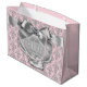Grand Sac Cadeau Bébé Fille Damassé Argent Rose