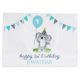 Ce mignon sac cadeau d'anniversaire comporte un adorable koala bébé portant un casquette de fête et tenant un ballon avec des drapeaux de fête. Personnalisez le sac cadeau d'anniversaire en ajoutant le nom et l'âge de votre enfant.