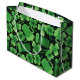 Grand sac cadeau brillant avec une image festive de bières shamrocks et vertes sur le noir. Voir confettis assortis, ballotin, étiquette de faveur, étiquette, autocollant carré et papier d'emballage. Voir toute la collection de sacs-cadeaux de la Saint Patrick dans les TOUCHES SPÉCIALES | Section Favoris.