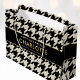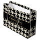 Élever votre cadeau et ajouter une touche d'élégance avec ce sac cadeau imprimé classique. Un design chic avec l'emblématique motif houndstooth, et personnalisé avec le nom du destinataire, l'âge d'anniversaire et la date ou l'expression personnalisée. Ce modèle élégant dispose d'un texte entièrement personnalisable, et peut être adapté pour différentes célébrations, y compris, anniversaires, anniversaires, fête des mères, fêtes et plus encore. La même conception est répétée de part et d'autre. Couleurs : noir, blanc cassé et or.