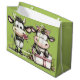 A Large Green Gift Bag Designed With Two Country Birthday Cows
