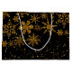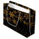 Grand Sac Cadeau Black & Gold Snowflakes Étoiles Joyeux Noël
