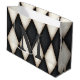 Grand Sac Cadeau Black & White Harlequin Check Elegant 3-D monogram