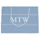 Grand Sac Cadeau Bleu bébé simple avec Monogramme blanc
