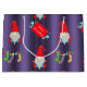 Ce mignon sac cadeau de Noël bleu a un motif de petits elfes de Noël (ou aides Père Noël) avec des casquettes rouges, pointus et de longues barbes pointues. Tout autour sont des petits sucres de canne, de jolies pancartes de Noël et des bas de Noël rayés multicolores.