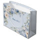 Sac Cadeau Grand Bleu Poussiéreux Aquarelle Fleurs d'Ivoire Feuilles Rustique. Design unique, beau, élégant. Facile à personnaliser. Style, taille et couleurs de la police peuvent être modifiés. Articles assortis disponibles.