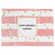 Sac cadeau avec un élégant motif. Dotée de rayures rose vif et de parties scintillant de confettis en faux or éparpillés un peu partout. Un carré blanc avec une fausse bordure en feuille d'or superposée, avec votre texte personnalisé à l'intérieur.