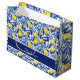 Grand Sac Cadeau Blue Watercolor Lemon Pattern Monogram Name
