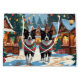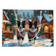 This festive design captures the joyful spirit of the holiday season, featuring an adorable dogs.Nestled in a winter wonderland, complete with a decorated Christmas tree, and beautifully wrapped presents. Snowflakes gently fall, adding a magical touch to the scene, while the vibrant colors of the holiday decorations create a warm and cheerful atmosphere.