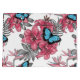 Bouquet dessiné à la main de fleurs tropicales, feuilles de palmiers et papillons