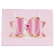 Sac cadeau avec un arc brillant avec contour doré et une pierre rose à facettes au centre. Style luxe féminin glam style.