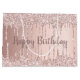Un sac cadeau pour un 21e anniversaire girly et glamour (ou tout âge). Un faux rose d'or faux métallique, d'aspect feuille arrière - plan avec de faux gouttes de parties scintillant, la peinture goutte à goutte. Script de style moderne à la main et le texte : joyeux anniversaire.