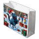 Grand Sac Cadeau Chat bleu russe à la neige avec Casquette de Noël