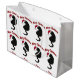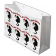 Ce sac de cadeau de Noël montre une image d'un chat noir utilisant un casquette de Père Noël et indique le "Joyeux Noël".