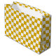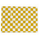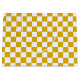 Abstract digital art of mustard yellow and white squares in a checkered formation.