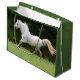 Cette belle photographie équestre présente un cheval caspien gris galopant avec une longue crinière et une queue coulant dans un pâturage vert contre un arrière - plan du lac. Cette image équine est parfaite pour toute personne qui aime les chevaux et les poneys des cavaliers de chasse à la dressage ou la cowgirl de pays. Parfait pour toute petite fille aussi qui a une passion pour les chevaux.