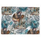 Grand Sac Cadeau Cheval fille cowgirl motif floral turquoise
