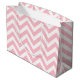 Grand Sac Cadeau Chevron horizontal rose et blanc de grande taille