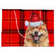 Comme c'est mignon ce petit Chow Chow dans son casquette Père Noël rouge contre un grand arrière - plan à motif plaid saisonnier rouge et noir, ce sac cadeau de saison de vacances est parfait pour la maman Chow ou l'amoureux des chiens.