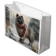 Grand Sac Cadeau Chien de Keeshond à Noël de neige