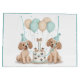 Belle illustration de chiens de caniche standard portant un casquette d'anniversaire entourant un gâteau d'anniversaire et des ballons. Parfait pour les amateurs de chiens ou de chiens de famille.
