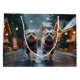 Ce design festif capture l'esprit joyeux de la saison des fêtes, mettant en vedette des chiens adorables. Nichés dans un pays des merveilles hivernal, avec un arbre de Noël décoré et des cadeaux magnifiquement emballés. Les flocons de neige tombent doucement, ajoutant une touche magique à la scène, tandis que les couleurs vives des décorations de Noël créent une atmosphère chaleureuse et joyeuse.
