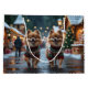 Cette conception festive capture l'esprit joyeux de la saison des fêtes, mettant en vedette des chiens adorables. Nichés dans un pays des merveilles hivernal, avec un arbre de Noël décoré et des cadeaux magnifiquement emballés. Les flocons de neige tombent doucement, ajoutant une touche magique à la scène, tandis que les couleurs vives des décorations de Noël créent une atmosphère chaleureuse et joyeuse.