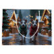 Cette conception festive capture l'esprit joyeux de la saison des fêtes, mettant en vedette des chiens adorables.Nichés dans un pays des merveilles hivernal, avec un arbre de Noël décoré et des cadeaux magnifiquement emballés. Les flocons de neige tombent doucement, ajoutant une touche magique à la scène, tandis que les couleurs vives des décorations de Noël créent une atmosphère chaleureuse et joyeuse.