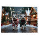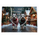 Cette conception festive capture l'esprit joyeux de la saison des fêtes, mettant en vedette des chiens adorables. Nichés dans un pays des merveilles hivernal, avec un arbre de Noël décoré et des cadeaux magnifiquement emballés. Les flocons de neige tombent doucement, ajoutant une touche magique à la scène, tandis que les couleurs vives des décorations de Noël créent une atmosphère chaleureuse et joyeuse.