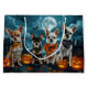 Libérez l'esprit éffrayant avec ce design d'Halloween étrange avec une meute de chiens sous un ciel sombre et clair de lune, entourée de chauves-souris volantes et de citrouilles brillants. Parfait pour ceux qui aiment une touche de plaisir effrayant avec leurs amis en fureur !