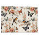 Oiseaux et papillons sont dispersés parmi un motif de fleurs de pivoines roses fleuries sur un arrière - plan d'ivoire, créant une nature harmonieuse et fantaisiste motif sans couture. Le motif d'image peut être agrandi ou réduit pour créer un effet différent.