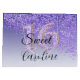 Une élégante parties scintillant violette tombant sur le côté d'un arrière - plan à dégradé violet. Au centre, il y a un numéro de parties scintillant unique 16 correspondant au style du sac cadeau. Contactez-moi si vous avez besoin d'aide pour la conception, ajouter quelque chose ou modifier/supprimer le numéro ou autre chose.