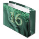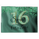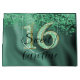 Une élégante parties scintillant verte tombant sur le côté d'un arrière - plan motif en feuille vert foncé. Au centre, il y a un numéro de parties scintillant unique 16 correspondant au style du sac cadeau.