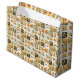 Des étiquettes noirs et blancs avec des fleurs d'or, des feuilles et du texte créent un beau collage d'objets sur le thème de Noël dans ce sac cadeau.