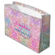 Make every present shine with this Colorful Mermaid whimsical birthday Large Gift Bag. Featuring a vibrant iridescent faux glitter background that glows with radiant ocean inspired hues, this eye catching design keeps the focus on a custom name for a beautifully personalized touch. The faux glitter effect delivers all the sparkle without the mess, creating a magical mermaid vibe that feels both playful and stylish. Perfect for holding larger birthday surprises, this gift bag adds a coordinated and dazzling finishing touch to your under the sea celebration.