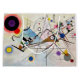 Wassily Wassilyevich Kandinsky (16 décembre 1866 - 13 décembre 1944) était peintre et théoricien d'art russe. Kandinsky est généralement reconnu comme le pionnier de l'art abstrait. Né à Moscou, Kandinsky a passé son enfance à Odessa (aujourd'hui Ukraine), où il a obtenu son diplôme à l'école d'art Grekov Odessa. Il s'inscrit à l'Université de Moscou, étudiant en droit et en économie. Réussi dans sa profession - il s'est vu offrir une chaire (chaire de droit romain) à l'Université de Dorpat (aujourd'hui Tartu, Estonie) - Kandinsky a commencé des études de peinture (dessin de vie, esquisse et anatomie) à l'âge de 30 ans. En 1896, Kandinsky s'installe à Munich, étudiant d'abord à l'école privée d'Anton Ažbe, puis à l'Académie des Beaux-Arts. Il retourne à Moscou en 1914, après le déclenchement de la Première Guerre mondiale. Après la Révolution russe, Kandinsky "est devenu un initié dans l'administration culturelle d'Anatoly Lunacharsky" et a contribué à la création du Musée de la Culture de la Peinture. Cependant, à ce moment-là, "son point de vue spirituel... était étranger au matérialisme argumentatif de la société soviétique"[4], et des opportunités ont surgi en Allemagne, à laquelle il est revenu en 1920. Il y enseigna à l'école d'art et d'architecture Bauhaus de 1922 jusqu'à la fermeture nazie en 1933. Il s'installe ensuite en France, où il vit toute sa vie, devient citoyen français en 1939 et produit quelques-uns de ses oeuvres les plus marquantes. Il meurt à Neuilly-sur-Seine en 1944. Citation : Wikipedia