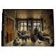 Ce dessin présente un tableau de l'artiste Sebastian Gutzwiller (1798-1872), né en Alsace, en France, à la frontière avec l'Allemagne. Il représente un concert musical qui se déroule dans une élégante maison familiale de la ville suisse de Bâle. Il y a une dame qui joue d'un piano ou d'un clavecin et un gentleman qui joue du violon. Un garçon est assis à une table alors qu'il joue d'une flûte ou d'un instrument semblable au vent de bois. Un tricot de vieille dame se trouve dans le coin de la chambre et d'autres membres de la famille se relaxent et apprécient la musique. Il y a aussi une fille qui joue avec un bébé et qui lui montre des photos dans un livre pour le divertir. Enfin, un petit chien se trouve dans la chambre. La salle est élégamment meublée avec un mobilier en bois fin et de nombreux tableaux et ornements aux murs.