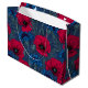 Grand Sac Cadeau Coquelicots rouges et fleurs bleues sur bleu